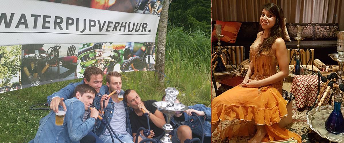Wij bieden een compleet verzorgde shisha-hoek (met waterpijpen, tabak, begeleider en aankleding).